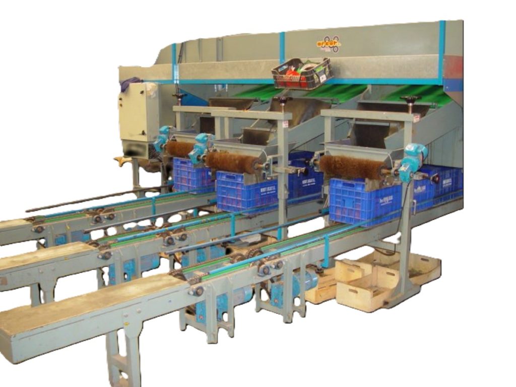 The bulk fruit filler is designed to automatically fill boxes with fruits of different shapes and sizes, optimizing the workflow on packing lines. Its system combines filling hopper and box conveyor, allowing fast, uniform and safe filling, minimizing damage to the fruit during handling.